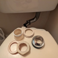 Before After トイレを流したらどこからか水が流れてくる、便座が割れてしまった。との依頼でお伺いしました。便座は前丸便座、色はアイボリーに交換しました。水漏れはタンクの下からの水漏れ、便器に入るところからも水漏れがありました。パッキンや部品の劣化、以前に修理をしている跡がありましたのでサイフォン管とスパッドの交換で対応させていただきました。水漏れの確認をして問題ありませんでしたので修理完了です。ありがとうございました。 フォトギャラリー